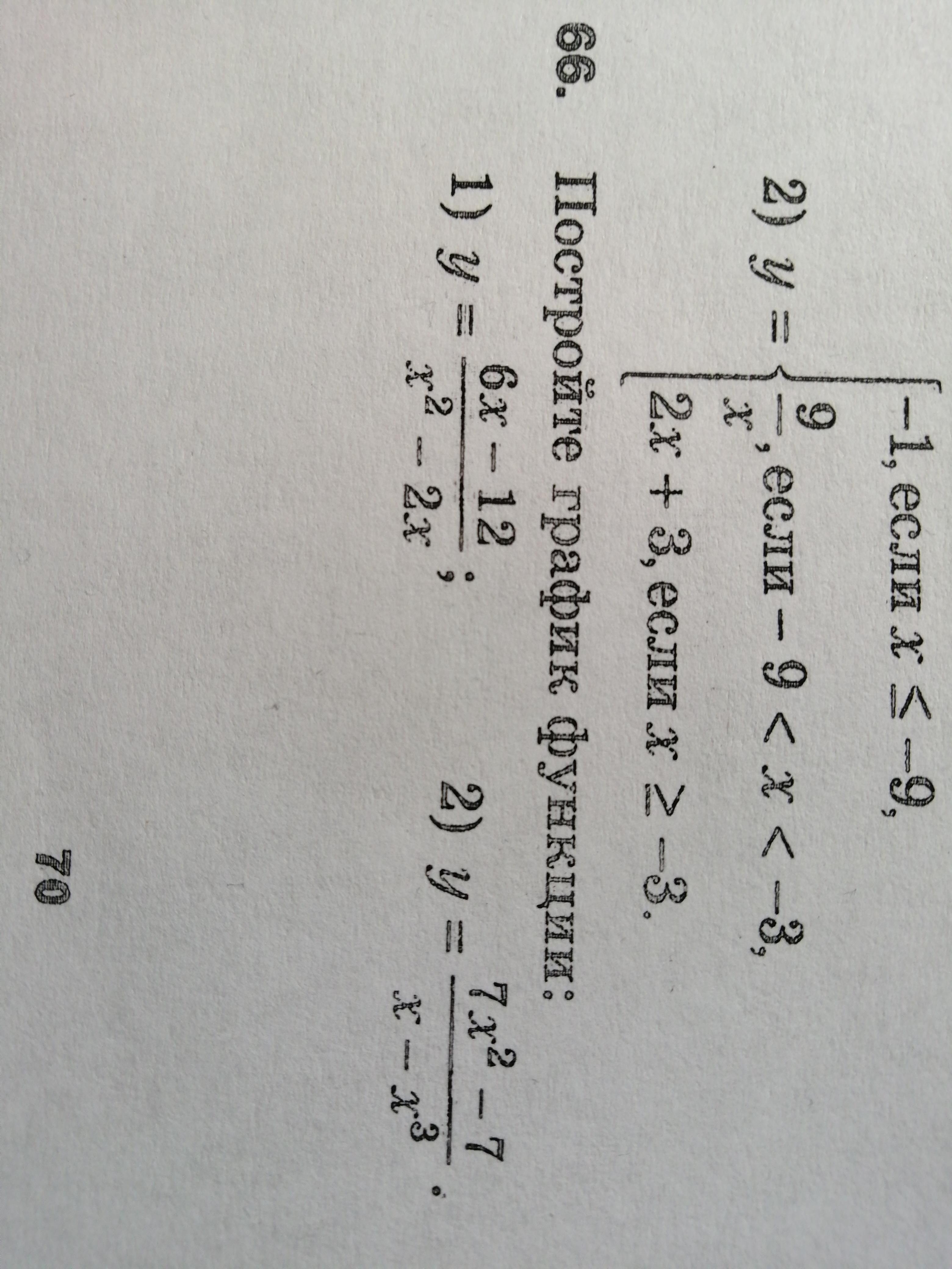 65. График на рисунке. Чертим прямую у= -1 на промежутке (-∞,-9 ] , часть гиперболы у=9/х на интервале (-9,-3) и прямую у=2х+3 на промежутке [-3,+∞) .