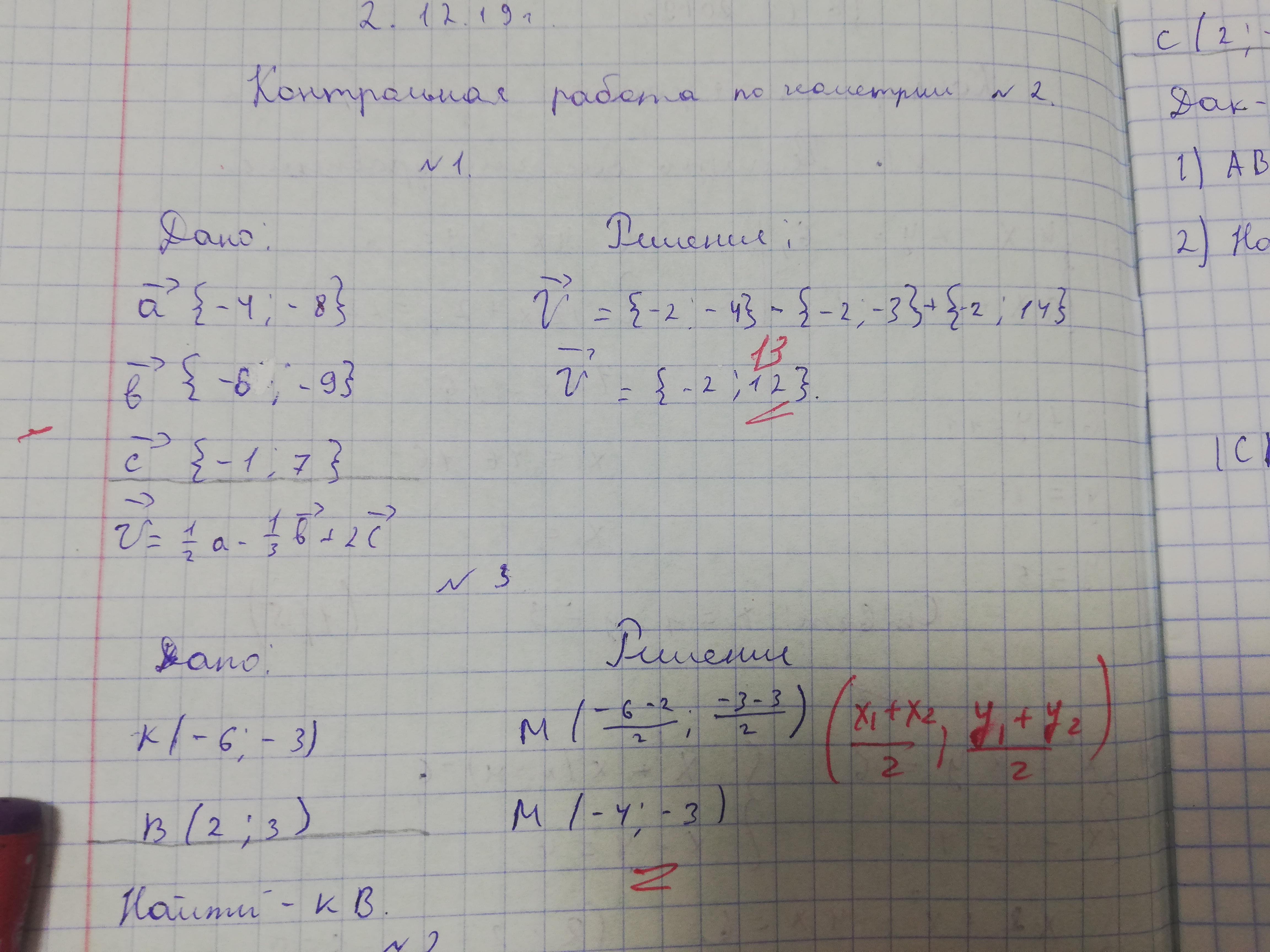 ( х 1+ х 2/2, у 1 +у 2/2) сверху 12 нужно походу 13.