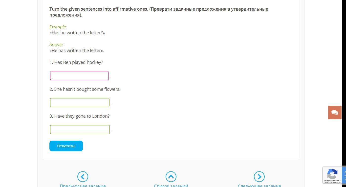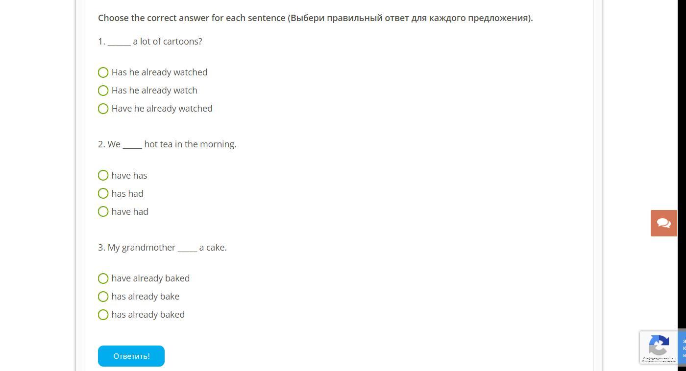 Все предложения Present Perfect