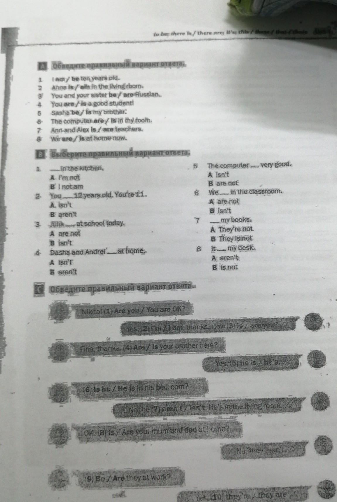 Ответ:1)am 2) is 3) are 4) are 5) is 6) is 7) are 8) are B 1)a 2)a 3)b 4)a 5)b 6) a 7) a 8) b C are you yes i am дальше не могу разобрать что написано