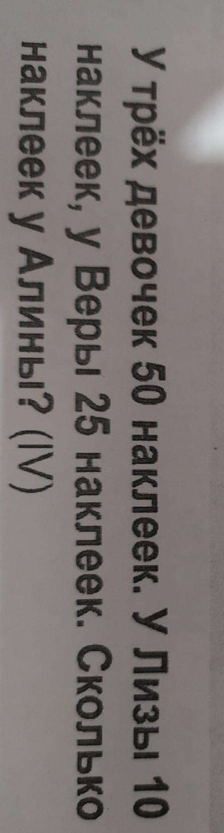 Ответ:15 наклеек у Алины