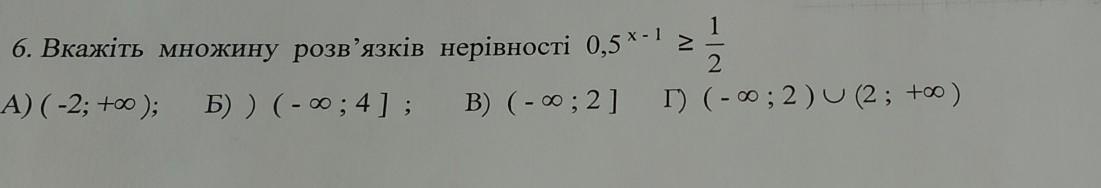 0.5^(x-1)>=0.5; x-1<=1; x<=2-ответ в