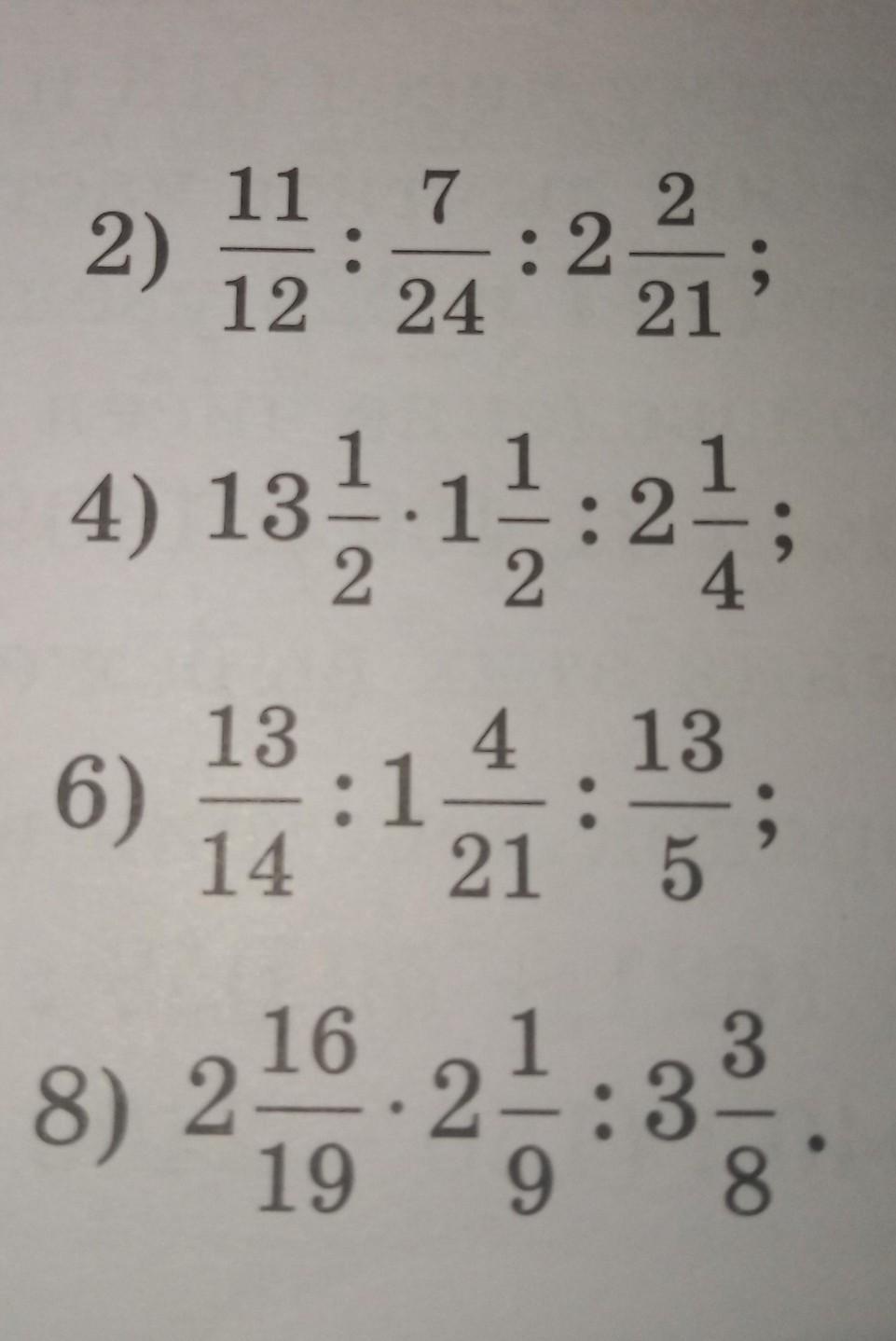 2) 11/12 ÷7/24 ÷2 2/21=11/12 ·24/7 ·21/23=11·2·3/23=66/23=2 20/23