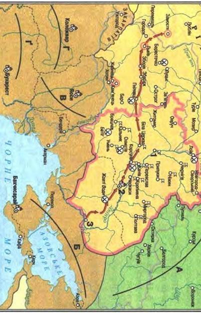 1) Коли відбувся похід війська Б. Хмельницького, позначений стрілками червоного