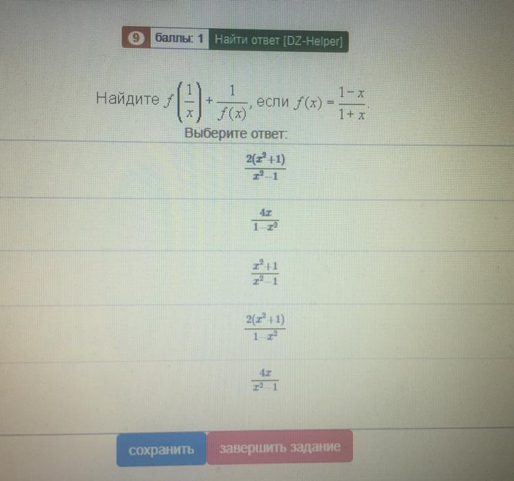f(1/x)+1/f(x)=(1-1/x)/(1+1/x) + (1+x)/(1-x)=((x-1)/x): (x+1)/x) +(1+x)/(1-x) =