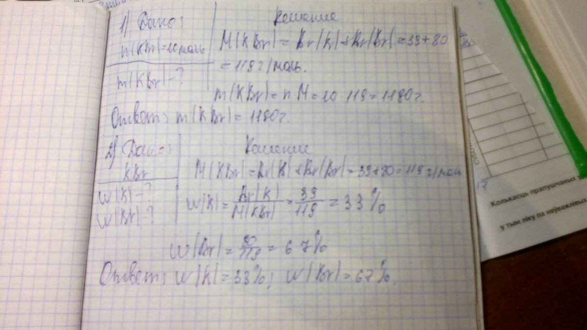 2. Рассчитайте массовые доли элементов в веществе KBr.