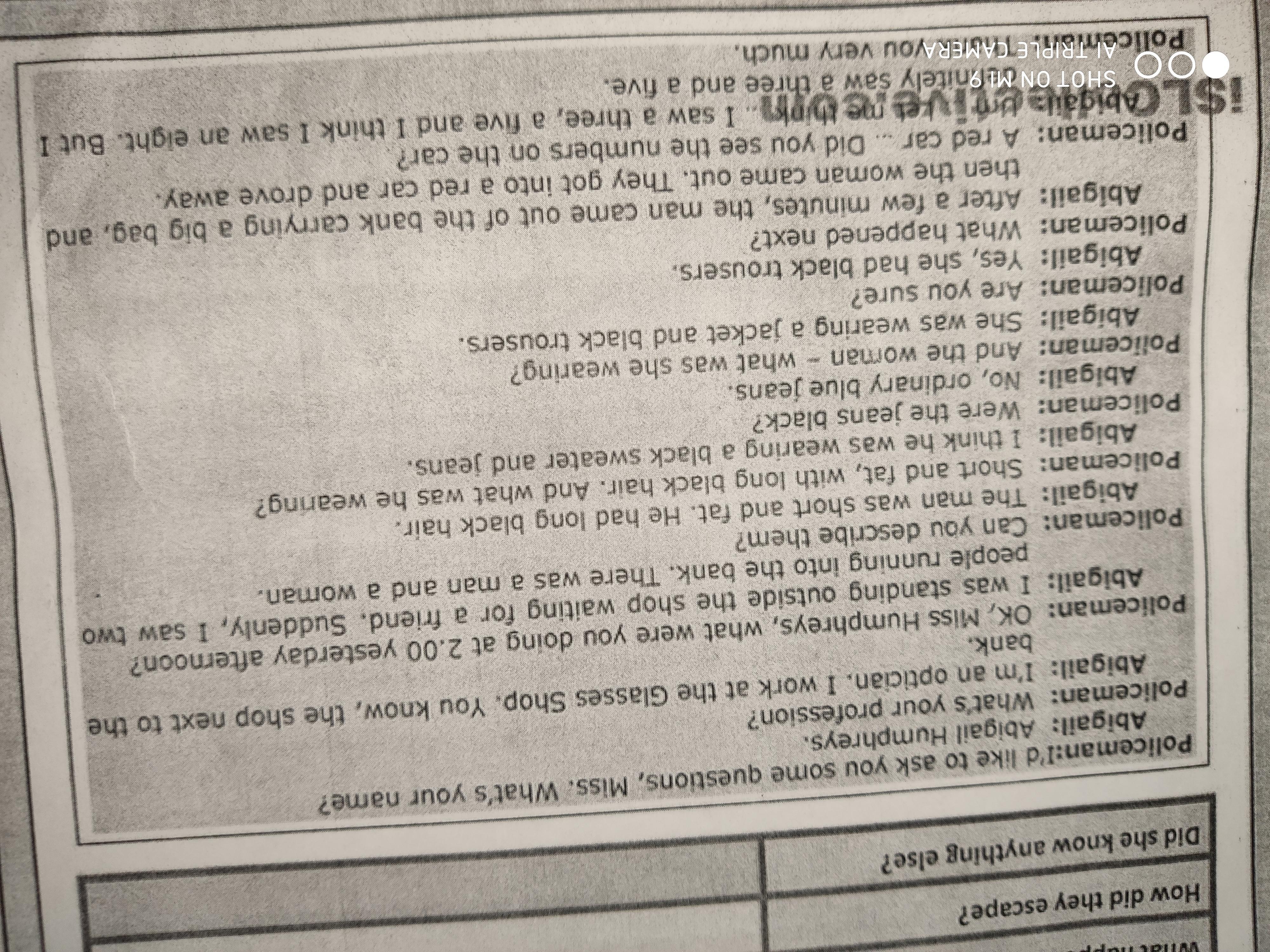 Помогите составить диалог на английском с допросом свидетеля полицией