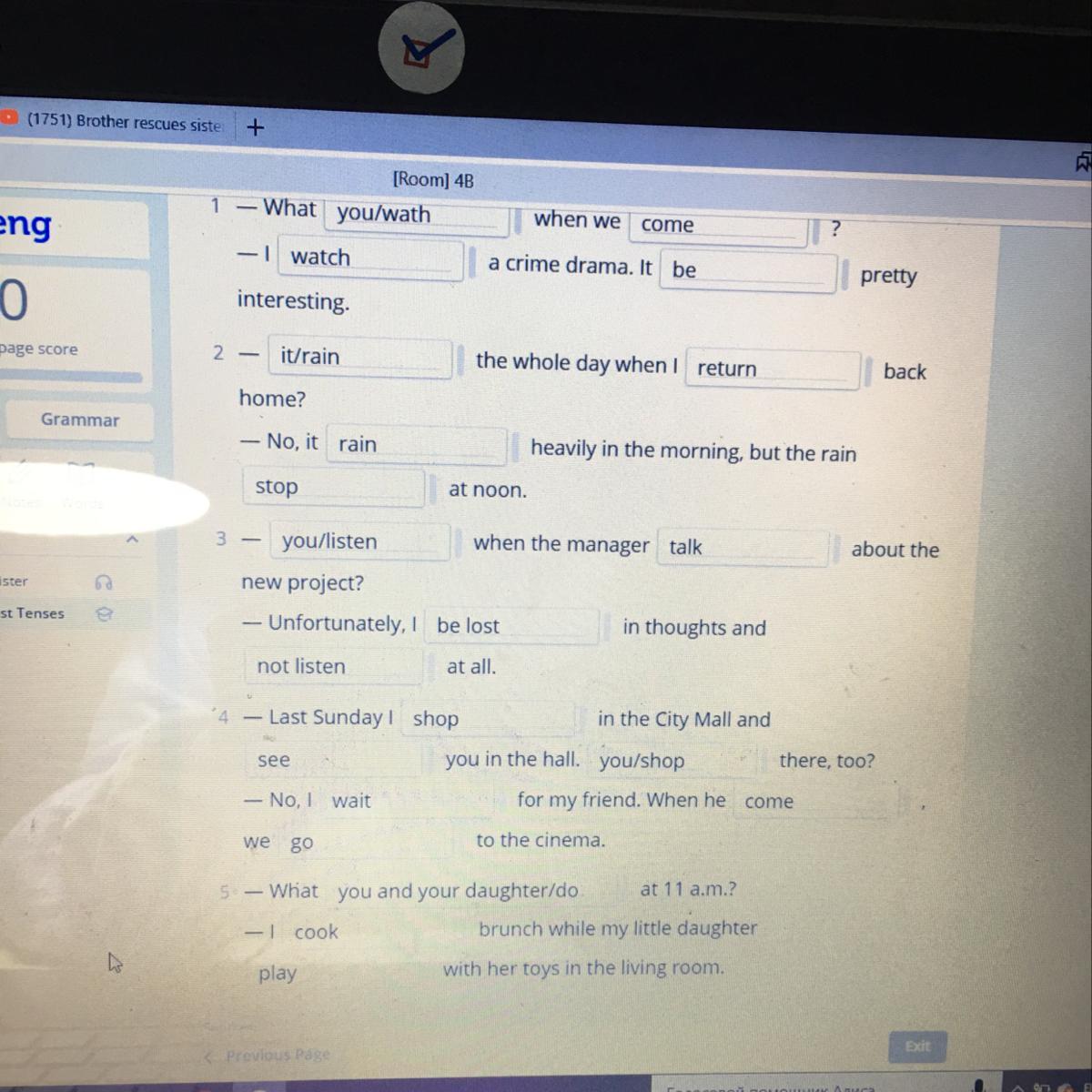 4. – Last Sunday I was shopping in the City Mall and saw you in the hall. Were you shopping there, too?