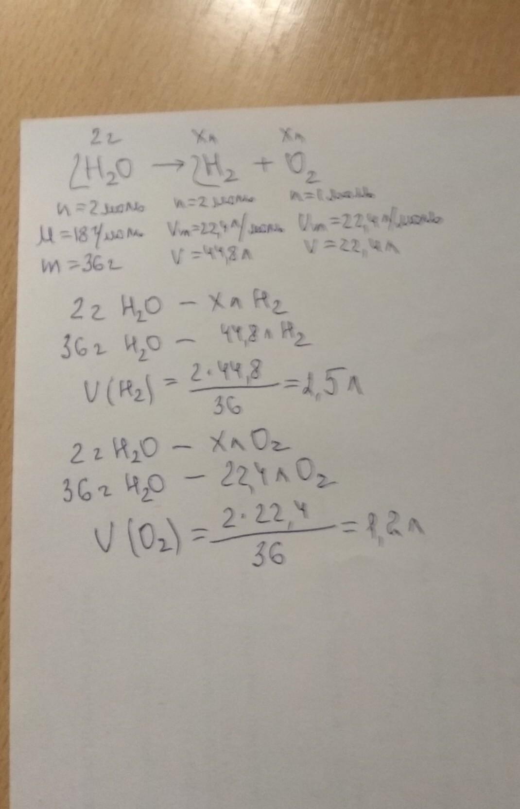 Решить задачу: 2 г воды разложили под действием электрического тока. Определите объем образовавшегося водорода и кислорода.