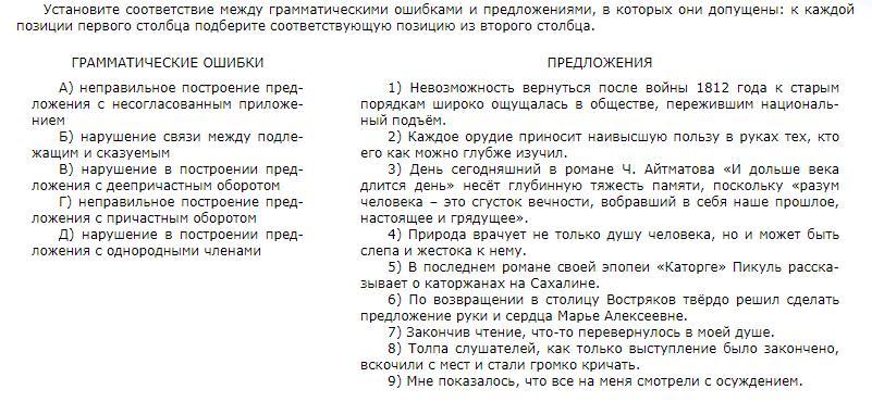 Установите соответствие между грамматическими ошибками и предложениями, в которых они допущены: к каждой позиции первого столбца подберите соответствующую позицию из второго столбца.