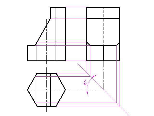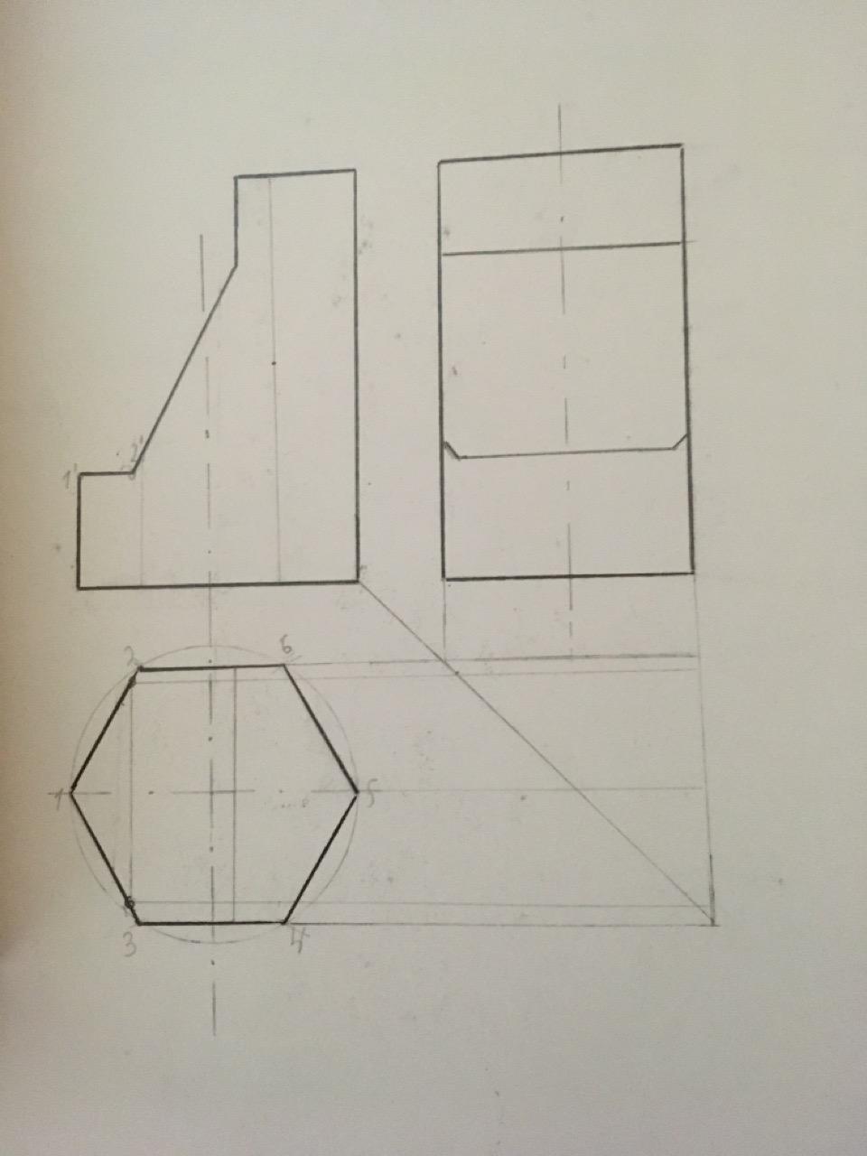 Пятый чертеж - построение третьего вида.