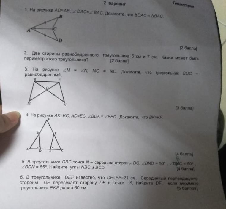 тем самым ВО = ОС отсюда три-угольник ВОС равнобедренный