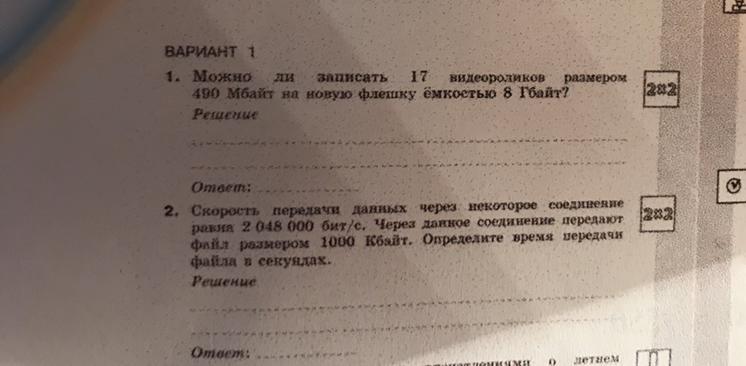 Через сколько секунд передаст файл размером 1000 Кбайт