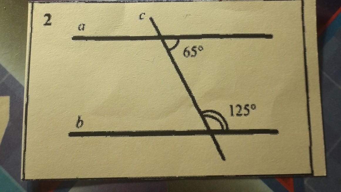 Смотри но там где 65 будет вертикальный угол он тоже будет 65 градусов который рядом с ним находится это будет смежные 180 - 65 115 в нижнем углу тоже самое Там где 125 там будет вертикальной тоже 125 и смежные с ним 180 - 125 будет 55 Вот так надеюсь поняла потому что очень сложно объяснить словами