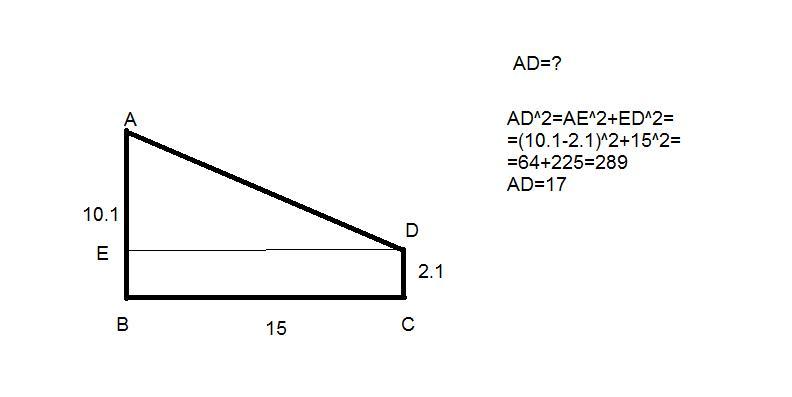 ах да, посчитала, пр теореме пифагора 17, значит ответ на доп. вопрос: прям. треугольник