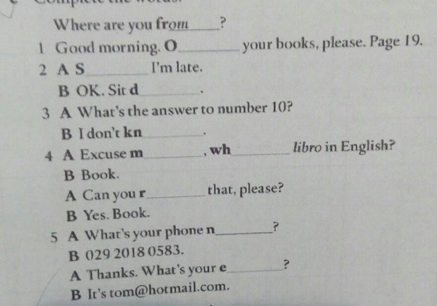 1 open 2 sorry- down 3 know 4 me- what‘s -repeat 5 number- email