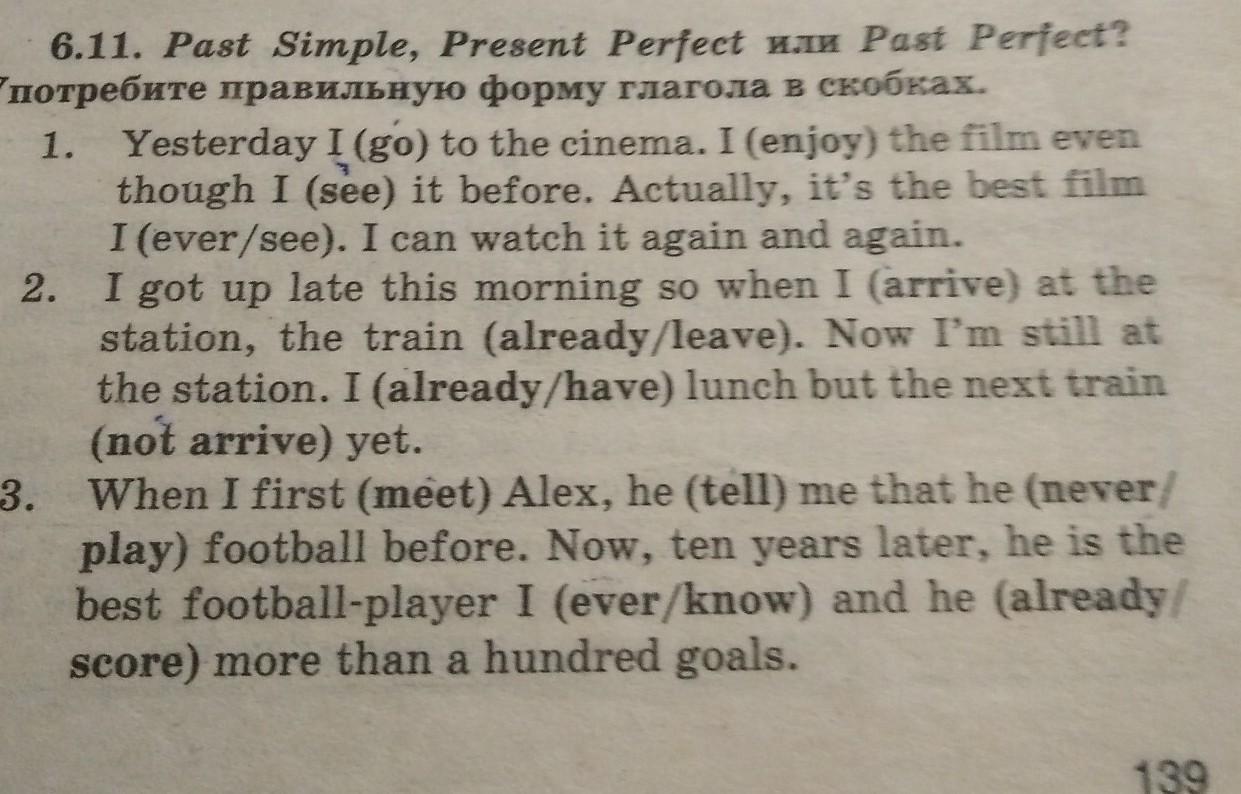 6.11 Past Simple Present perfect или pasy perfect употтребите правильную форму глагола в скобках