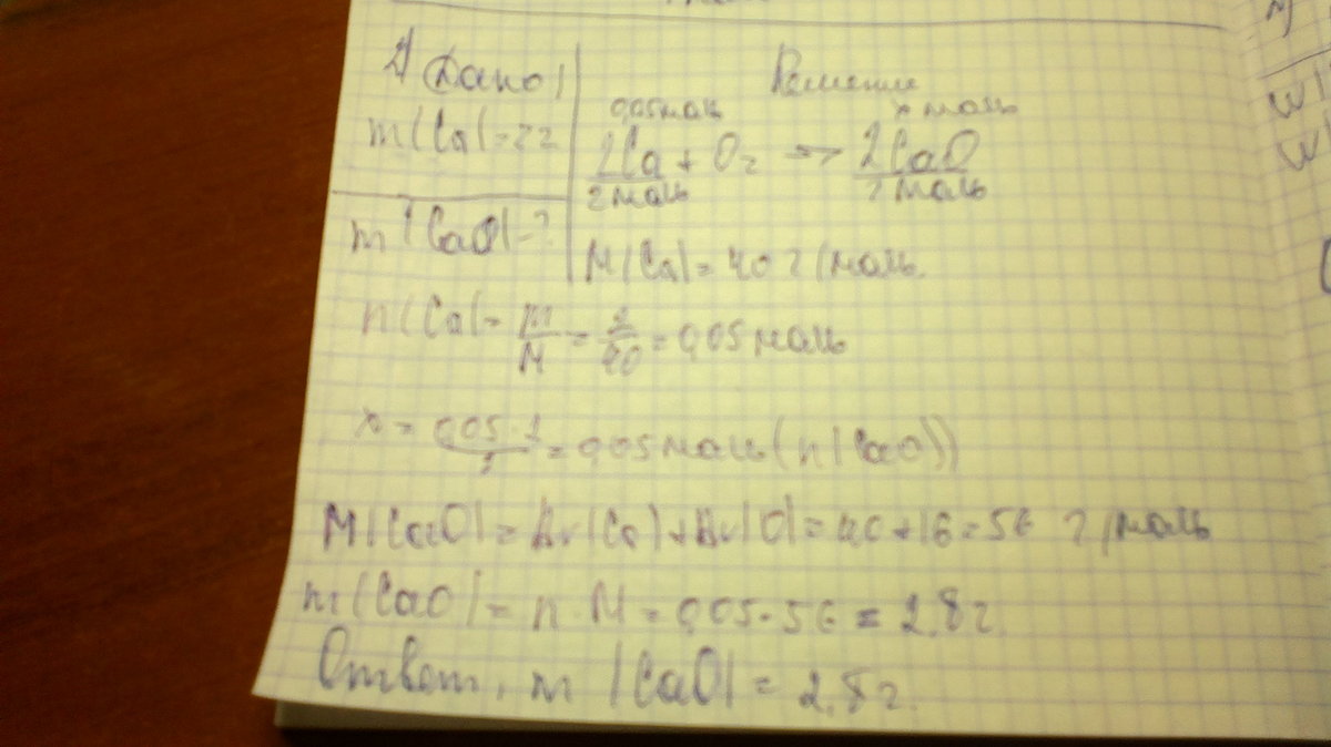 2) Вычислите массу оксида кальция,полученного при взаимодействии 2г. кальция с кислородом