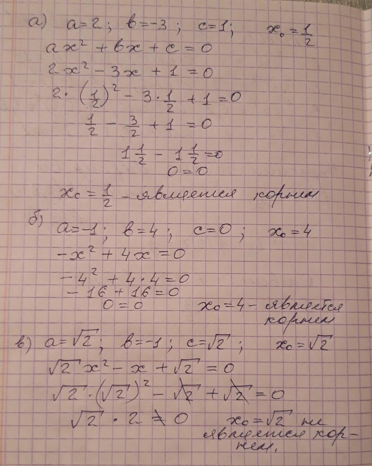 в) a = √2 ; b = –1; c = √2 ; х0 = √2 .