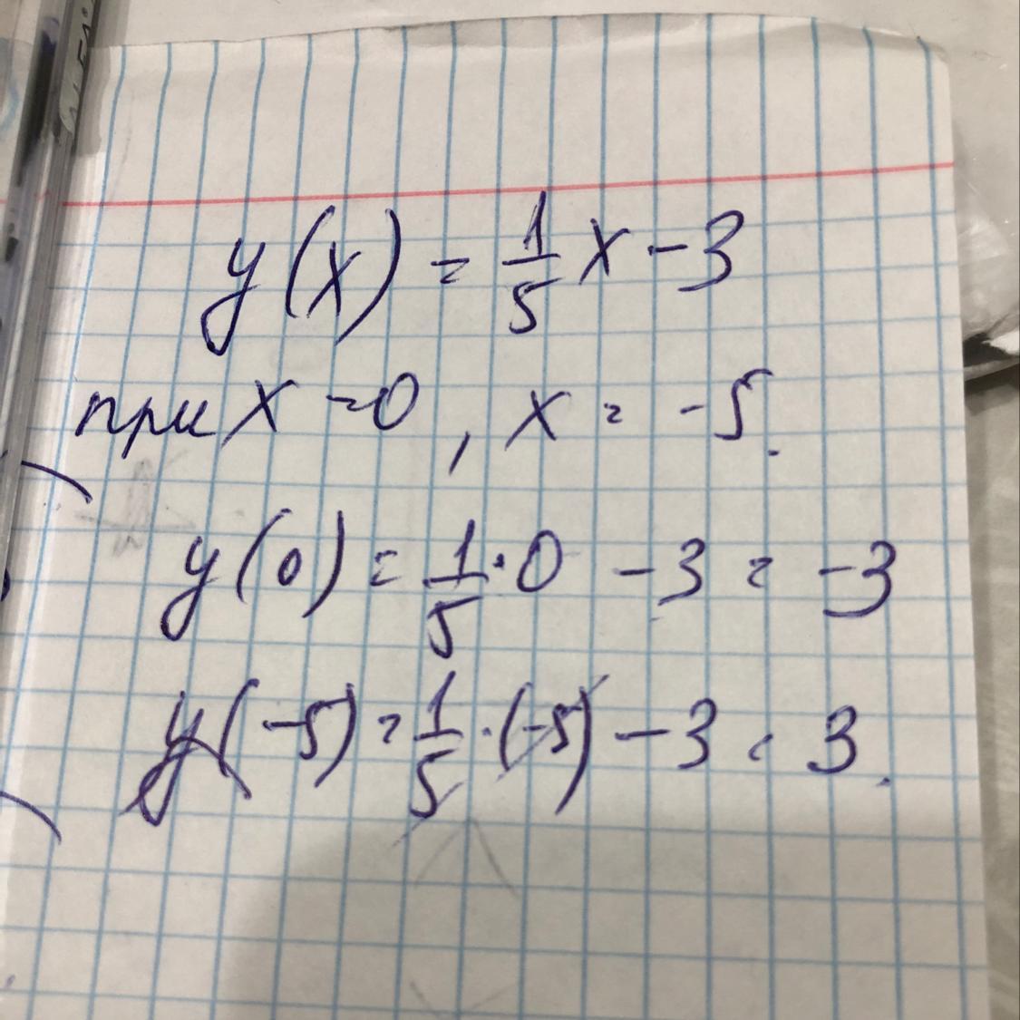 Если х=-5, то у=1/5*(-5)-3=-4