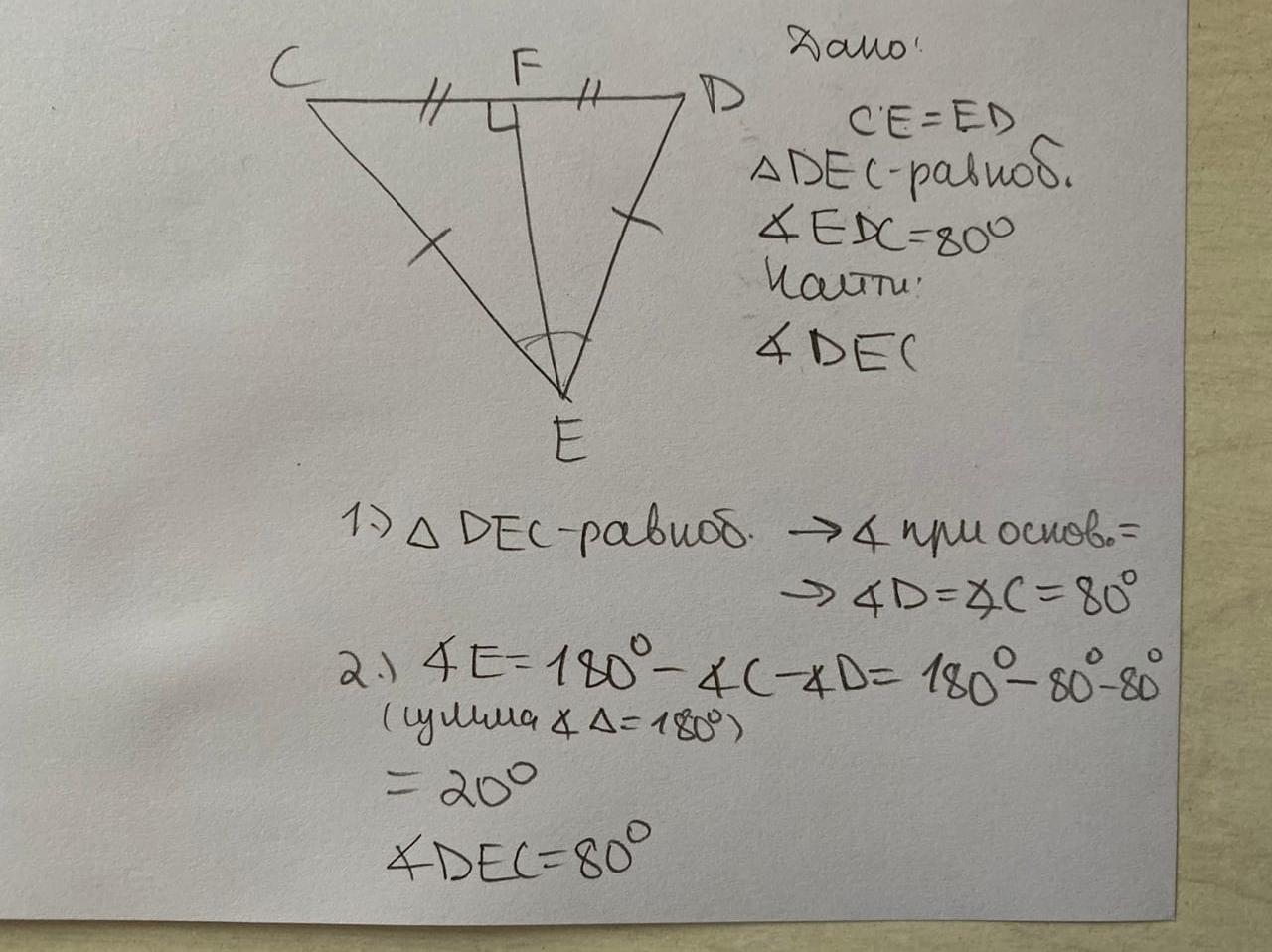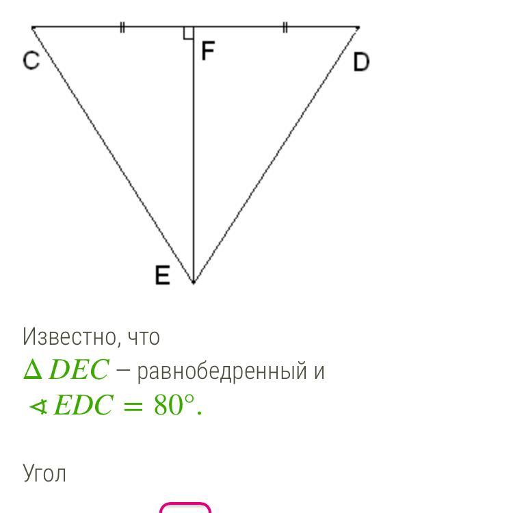 Известно, что ΔDEC — равнобедренный и ∢EDC=80°.