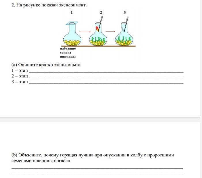 1этап)Зёрна пшеницы положили в колбу и добавили воды