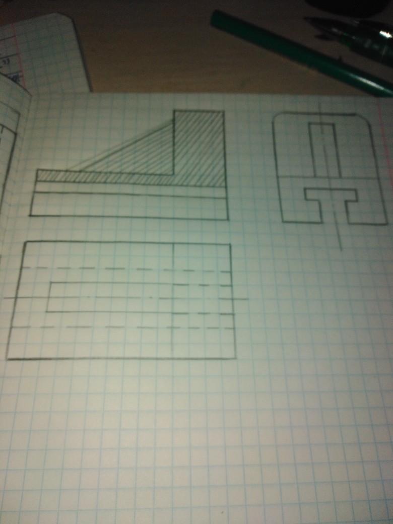 Фронтальный разрез (третий чертеж) - ребро штриховать не нужно, согласно ГОСТ