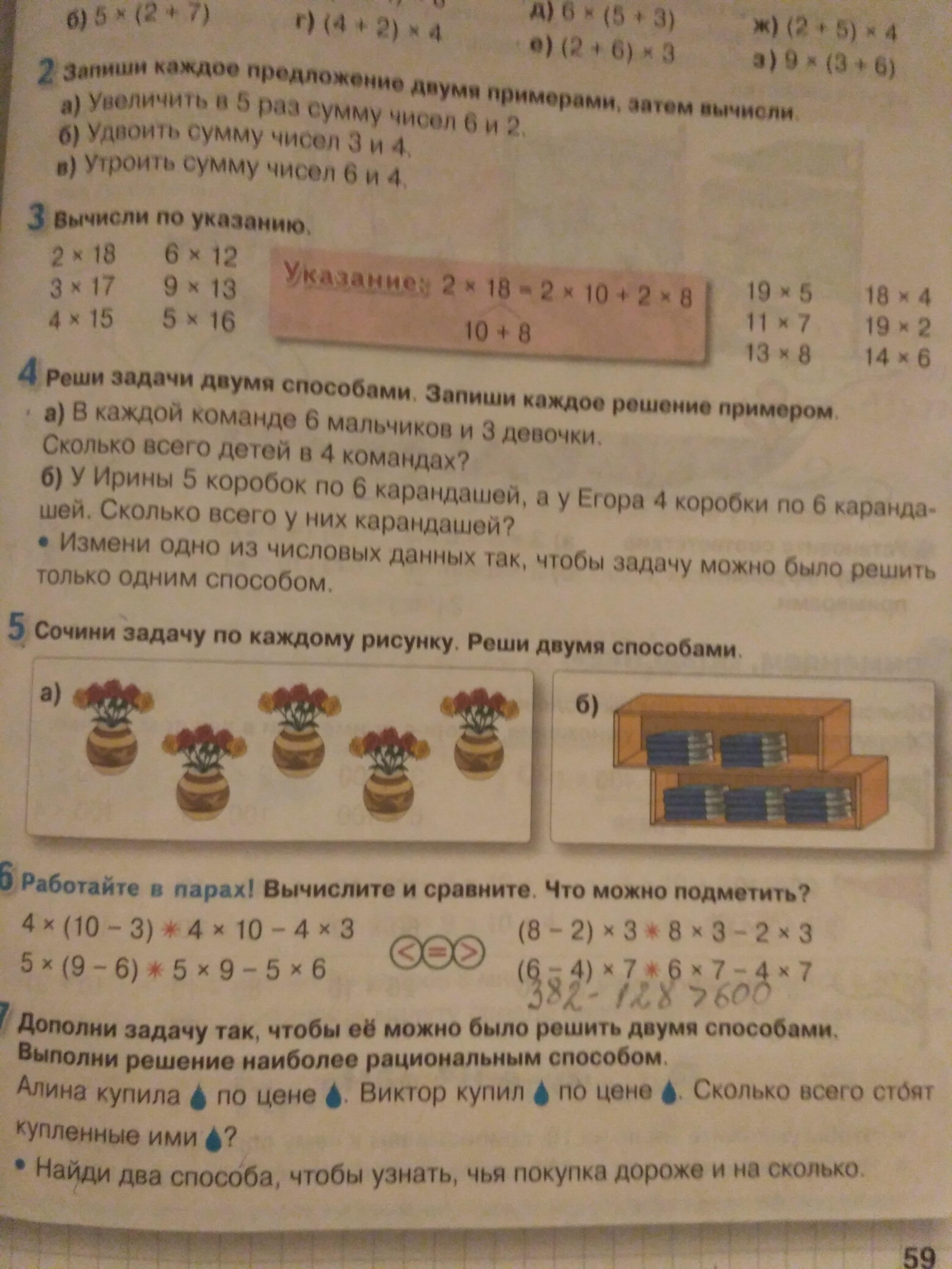 У Ирины 5 коробок по 6 карандашей, а у Егора 4 коробки по 6 карандашей . Сколько всего у них карандашей. Измени одно из числовых данных так, чтобы задачу можно было решить только одним способом .