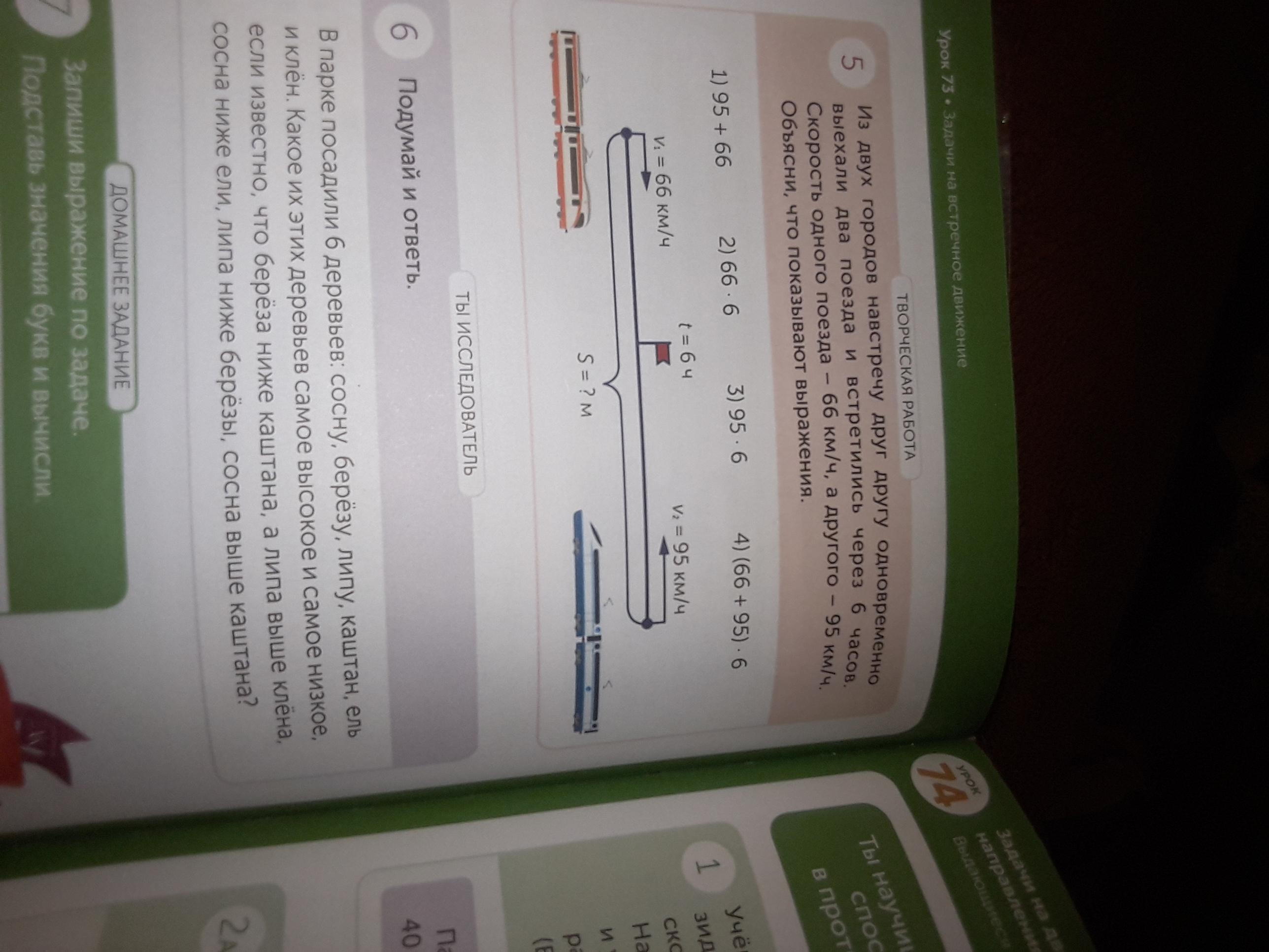 3) (66+95)*6=966 км общее расстояние, которое проедут оба поезда.