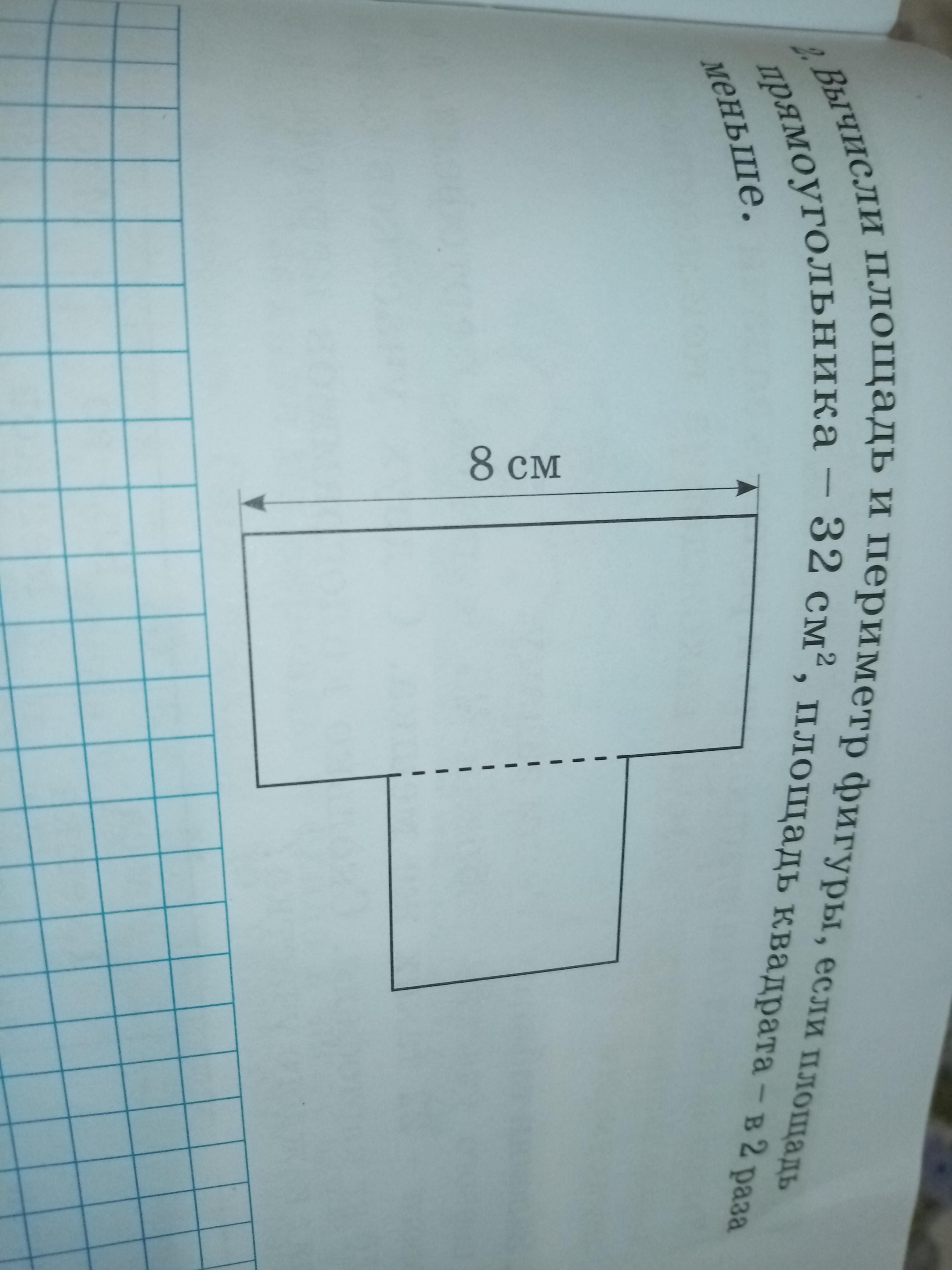 32:2=16 см² площадь квадрата
