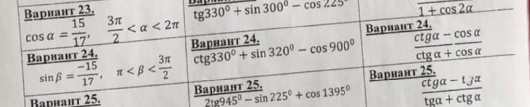 1. Значению -15/17 удовлетворяет углы 242 и 298. Угол по условию задачи лежит между 180 и 270 градусами. Поэтому ответ 242°