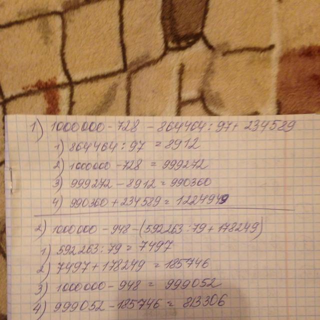 1 000 000 – 728 – 864 464 : 97 + 234 589