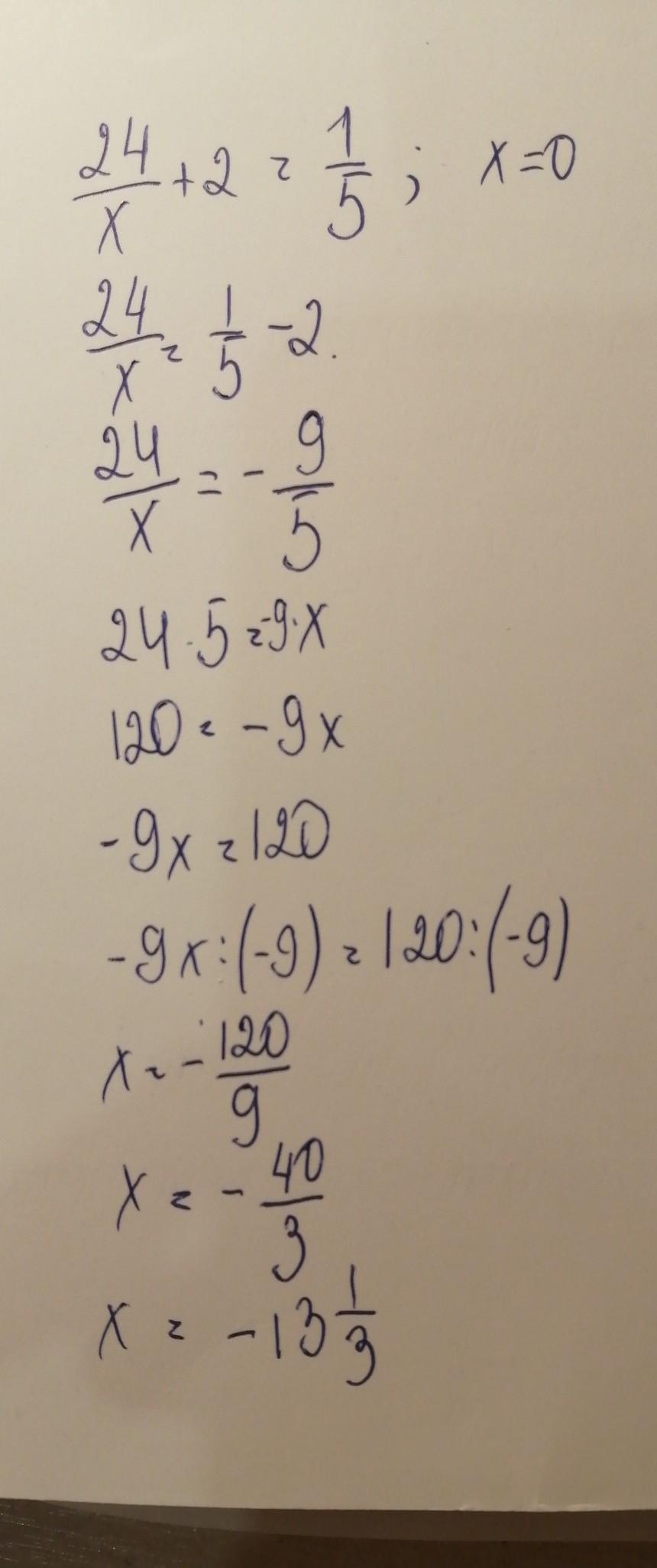 х = 24 : (-9/5) = 24 * (-5/9) = -120/9 = -40/3
