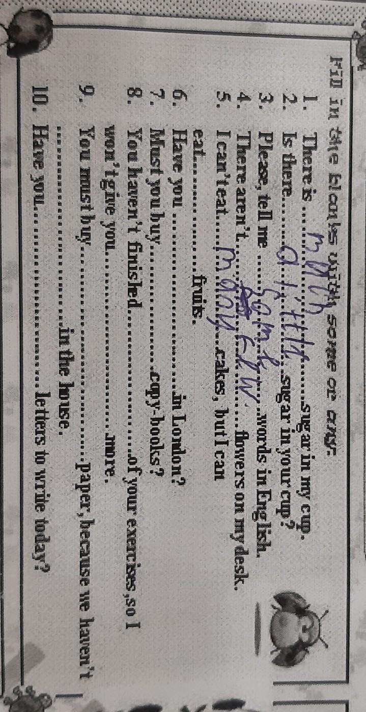 1.some 2.any 3.any 4.some 5.any, some 6.any