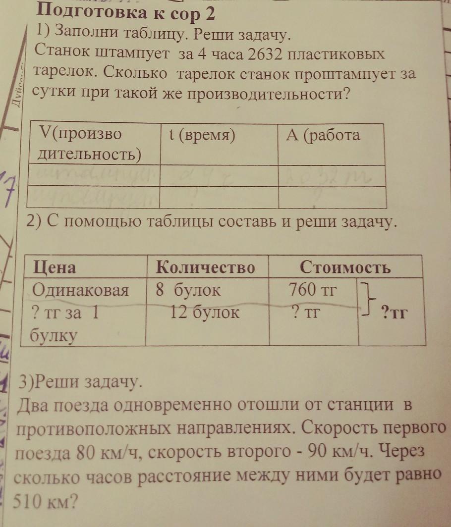 1) Заполни таблицу. Реши задачу.