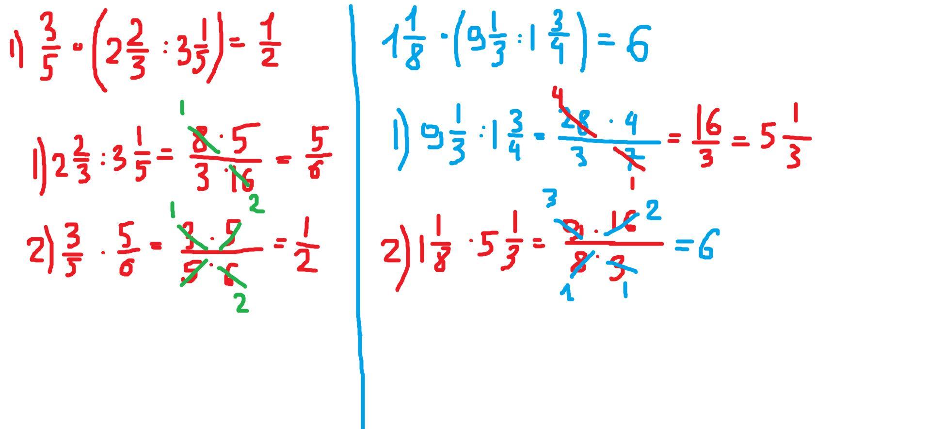 1) 3/5*(2 2/3:3 1/5)=1/2