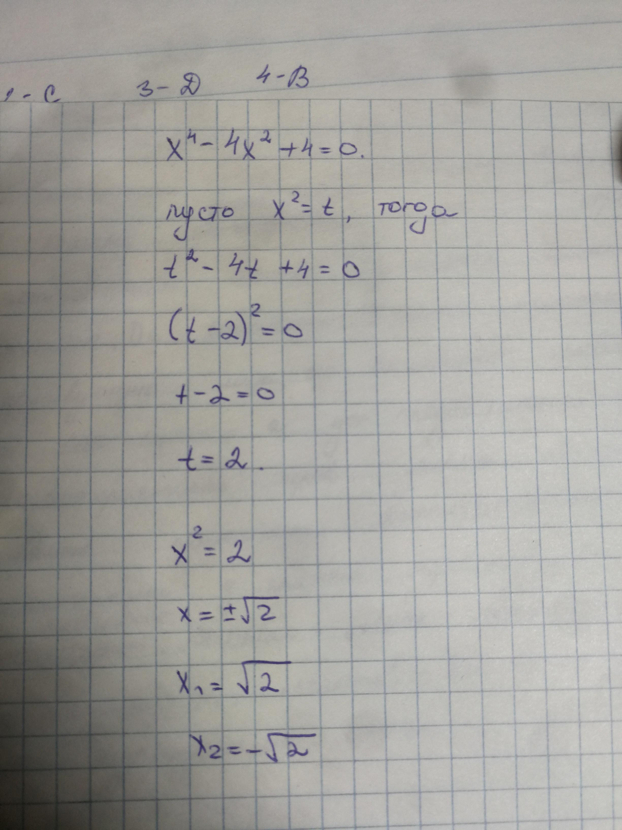 x4 - 4x2 + 4 = 0