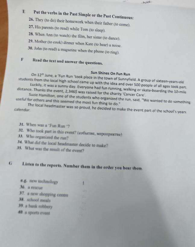 Е: They do their homework when their father come.