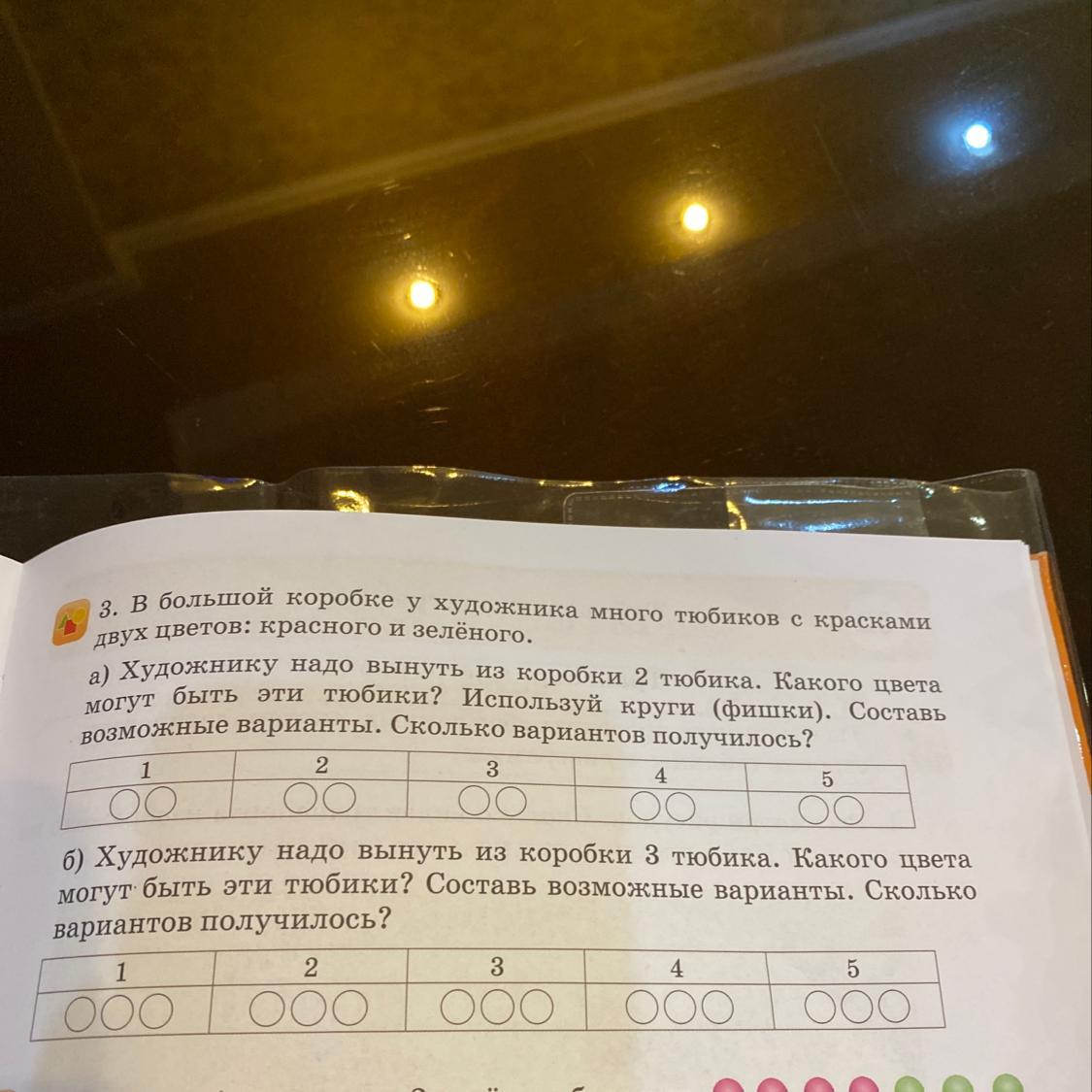 1) тюбики могот быть одного цвета зелёного или красного 2)тюбики могут быть разных цветов но внутри красный или зелёный 3)художник вытошит зелёный и красный цвет 4)тюбики будет пустые 5) тюбики могут быть сноруже одного цвета а внутри других цветов