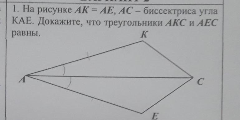 АК=АЕ. => угол 1=углу 2 => то они равны