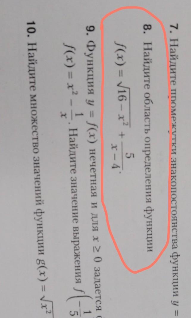 16-x^2>=0, x^2<=16, |x|<=4, [-4;4] и х-4 не=0, х не=4, итог: [-4;4)