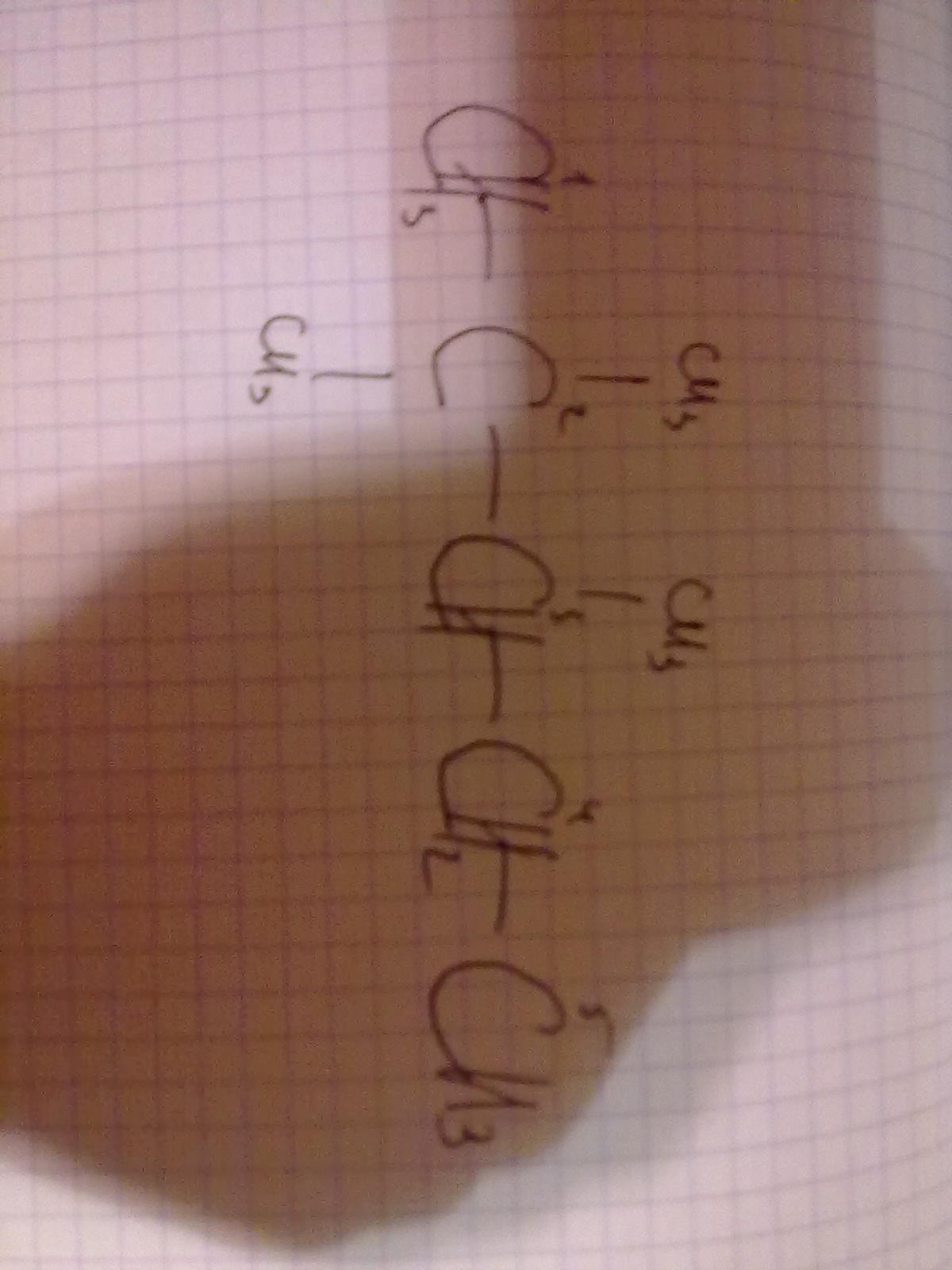 1)структурная формула 2 2 3- триметилпентан 2)определите число первичных, вторичных, третичных и четвертичных атомов углерода 3)напишите уравнения реакции галогенирования этого соединения. назовите целевой продукт реакции. 4)Напишите уравнение реакции получения этого углеводорода методом Вюрца 5)Определите относительную плотность паров вашего углеводорода по водороду и воздуху.