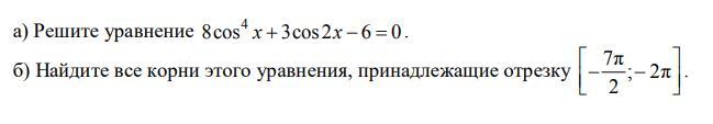 8cos^4 x + 3(2cos^2 x - 1) - 6 = 0