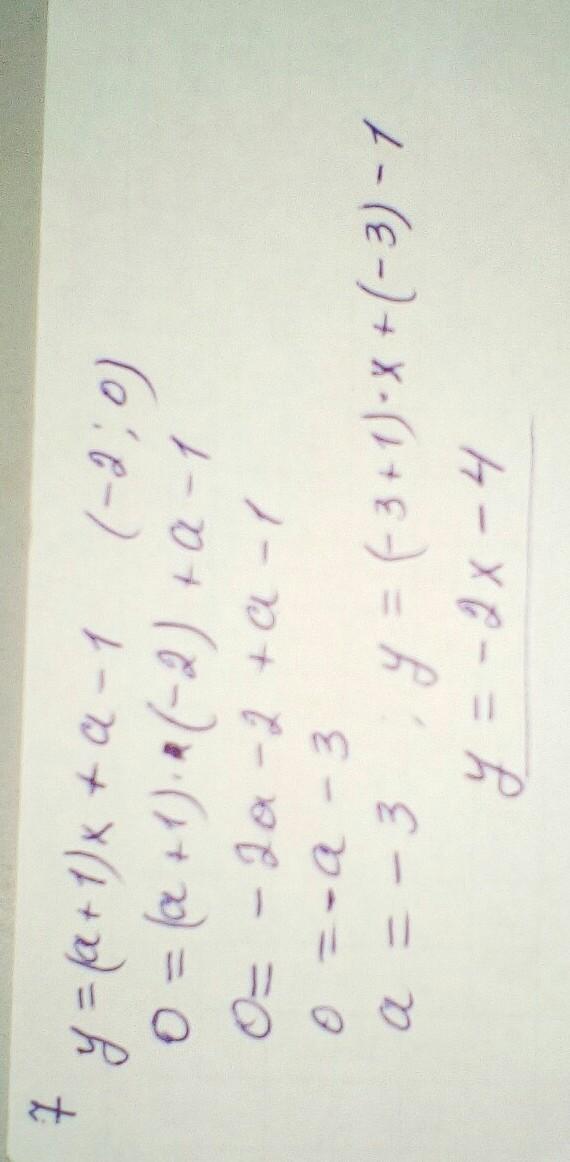 График функции заданной ураврением y = (a+1) x +a -1 пересекает ось абсцисс в точке с координатами (-2;0)