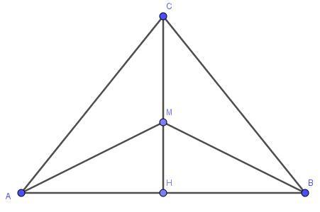 На висоті CH рівнобедреного трикутника АВС з основою АВ позначили точку М. Доведіть, що трикутник АМВ рівнобедрений.