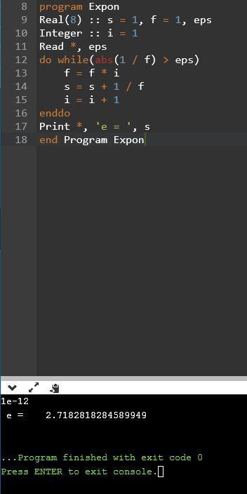 заданной точностью (e+1+1/1!+1/2!+1/3!+... 1/n! +... in fotran