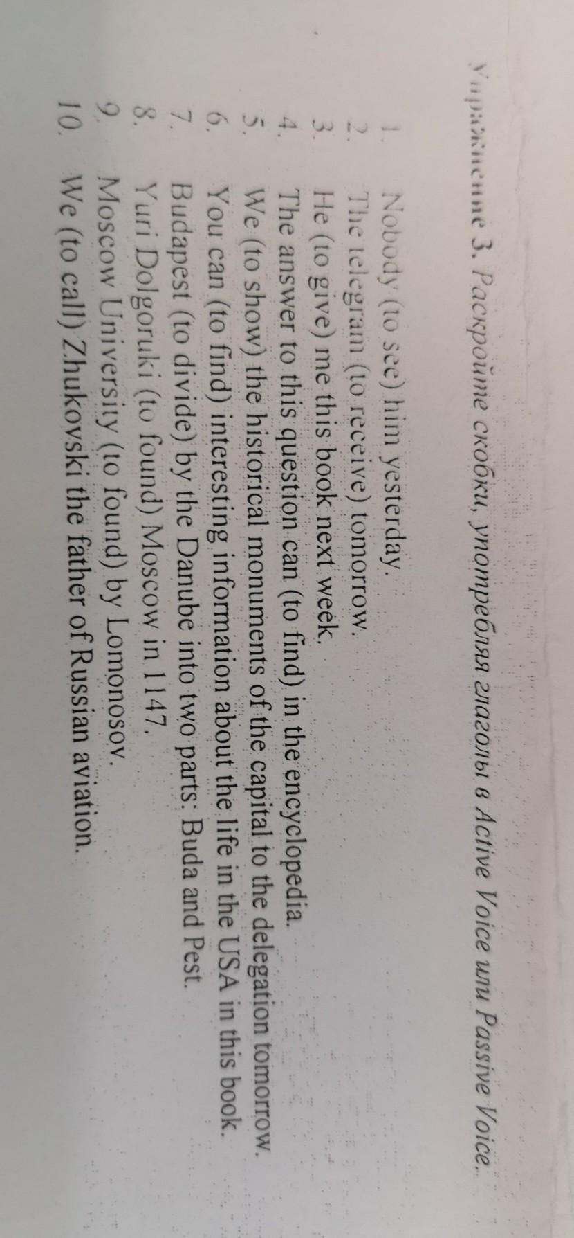 Упражнение 3. Раскройте скобки, употребляя глаголы в Active Voice или Passive Voice,