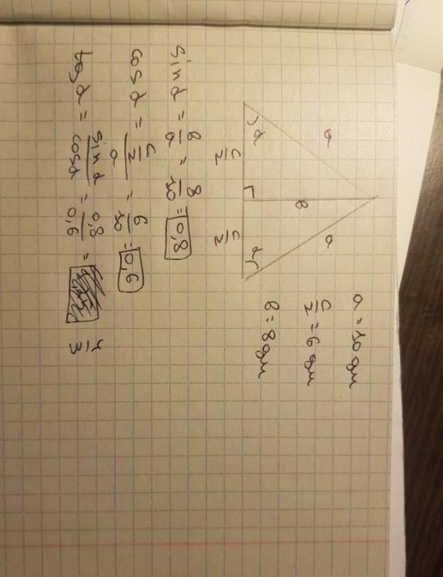 A) синус; b)косинус; 3)тангенс острого угла при основании.