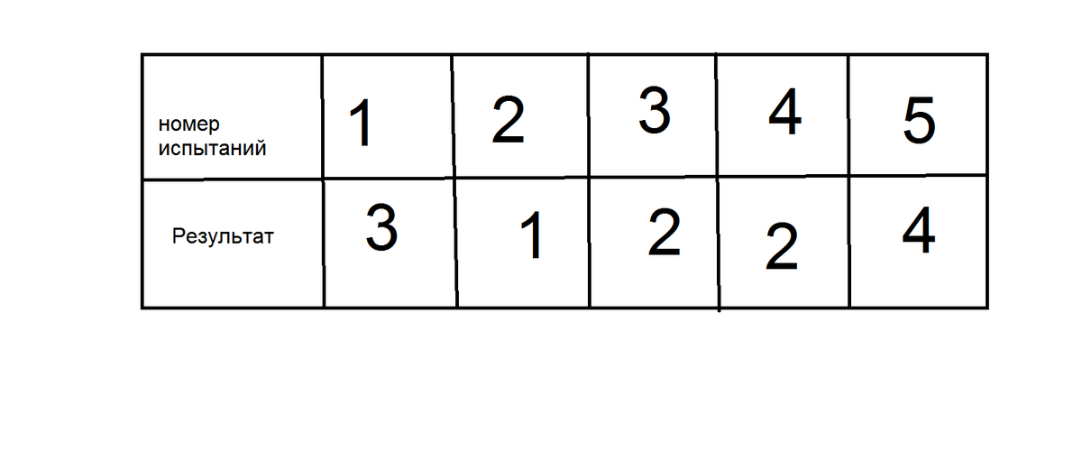 Игральную кость бросают пять раз. Результаты,полученные в ходе испытаний,представлены в виде таблицы.Найдите разность между наибольшим и наименьшим результатом: