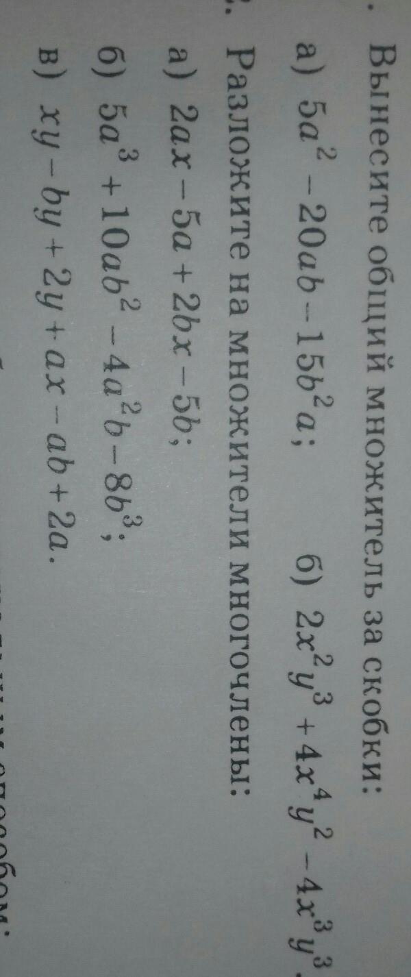 5 {a}^{2}  - 20ab - 15b {}^{2} a = 5a(a - 4b - 3b {}^{2} ) =  \\  = 5a(  - 3b {}^{2}  - 4b + a)